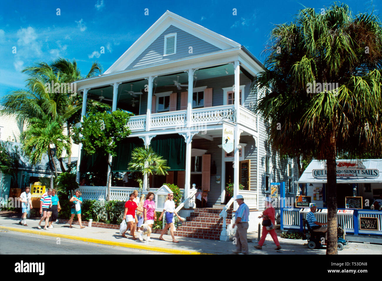 Florida Keys Key West Duval Street Bagatelle Restaurant Built 1884 Classic Revival Style Tourists Visitors Pedestrians Stock Photo Alamy